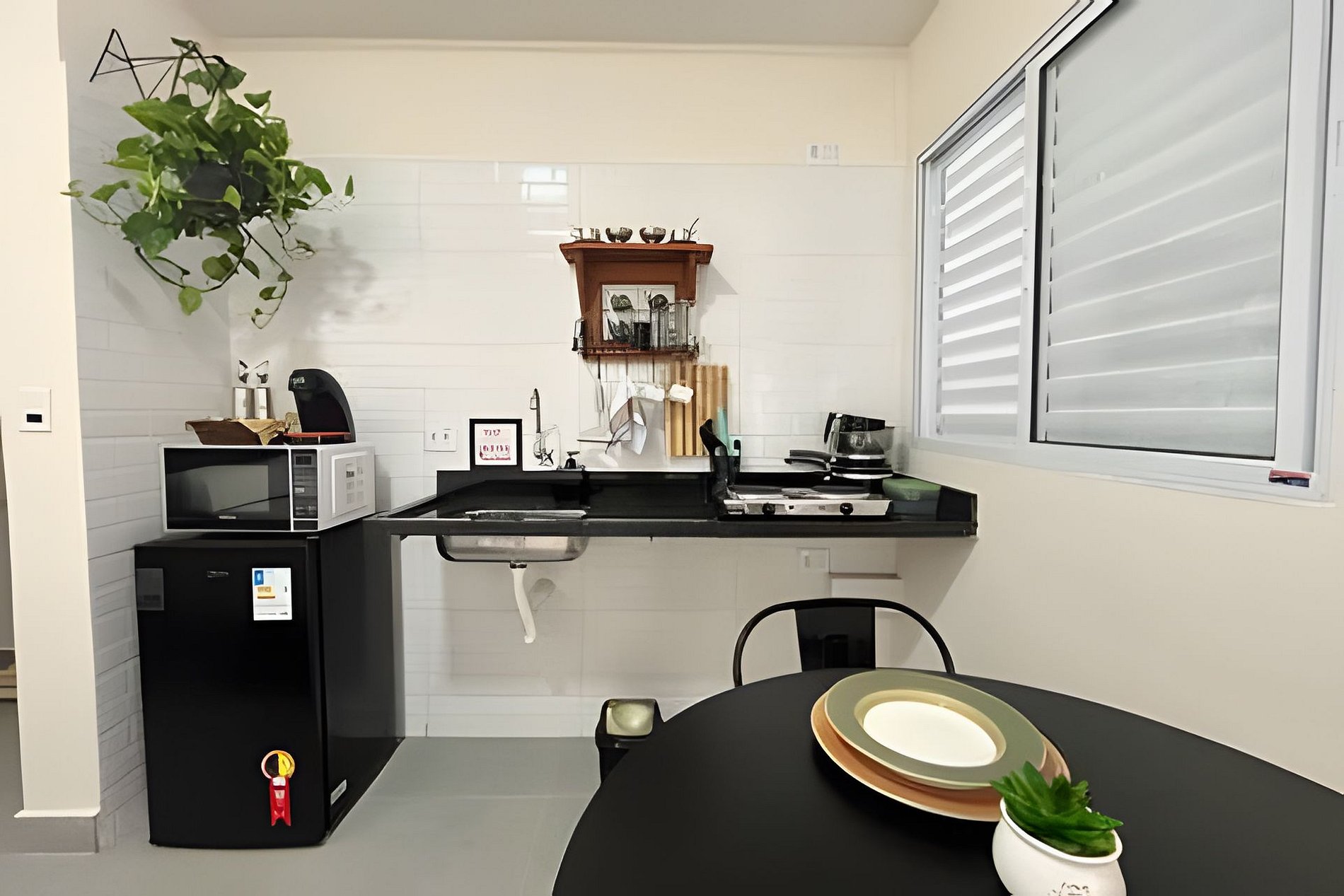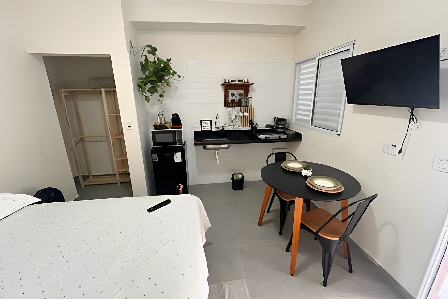 Studio Completo. Tudo o que é necessário para uma estadia confortável e funcional. Essa unidade possui uma Cama de Casal, Cozinha com utensílios, Microondas, TV, Frigobar e Mesa de Trabalho. Ficamos localizados a 3km do Aeroporto de Jundiai, Proximos as grandes Rodovias como, Anhanguera, Bandeirantes, Dom Gabriel e os principais polos Industriais de Jundiai, Itupeva. Facil acesso para São Paulo, Campinas, Itupeva, Louveira, Itatiba...