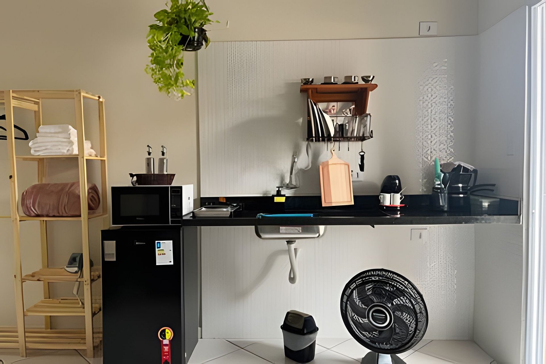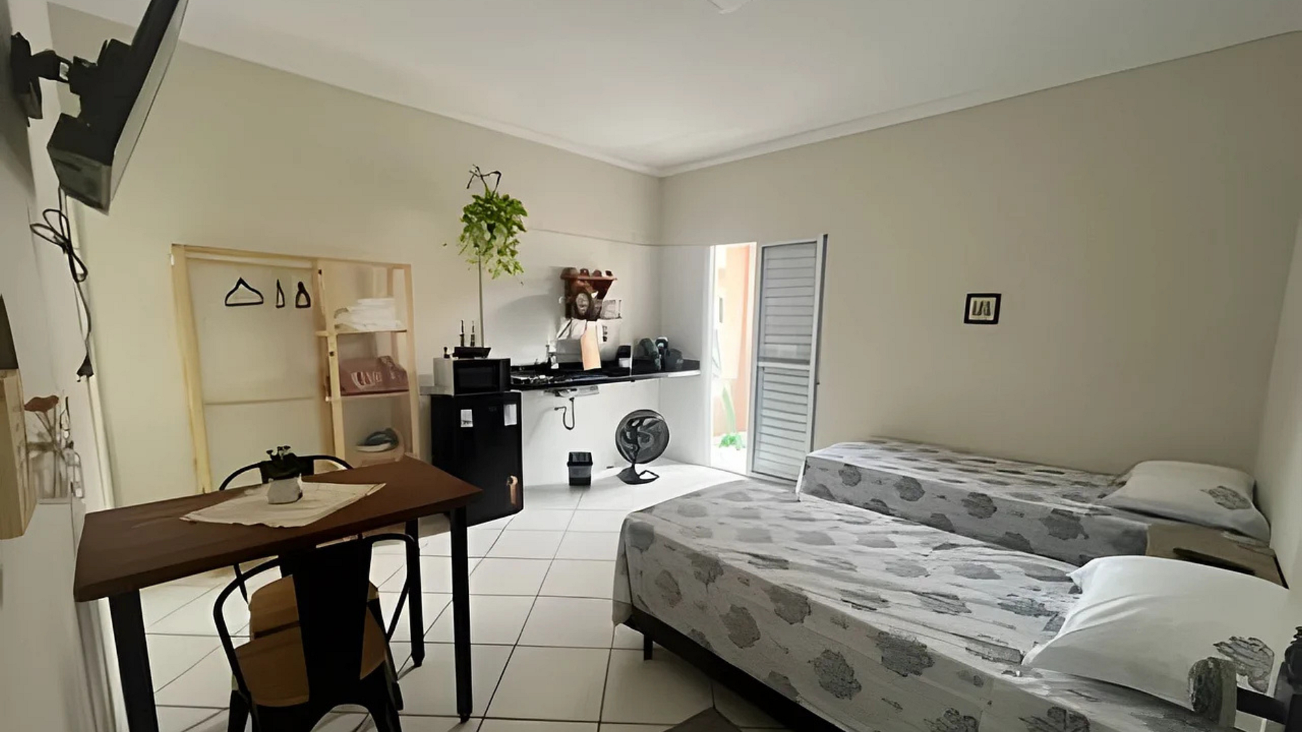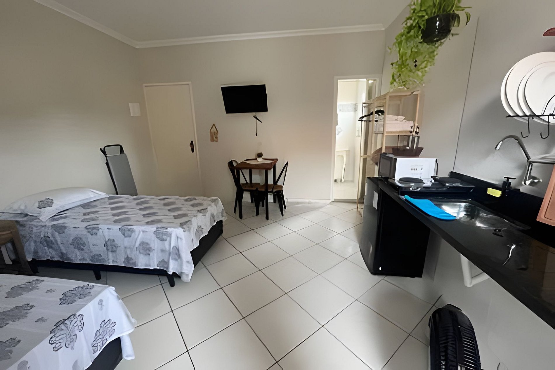 Studio Completo. Tudo o que é necessário para uma estadia confortável e funcional. Essa unidade possui duas camas de solteiro, Cozinha com utensílios, Microondas, TV, Frigobar e Mesa de Trabalho. Ficamos localizados a 3km do Aeroporto de Jundiai, Proximos as grandes Rodovias como, Anhanguera, Bandeirantes, Dom Gabriel e os principais polos Industriais de Jundiai, Itupeva. Próximo ao HopHari.
